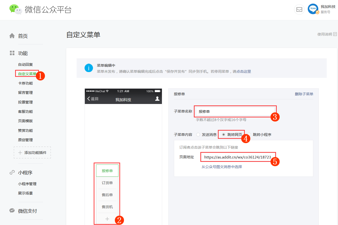 4)将报单链接内置入微信公众号,参见 6.2.3 小节;